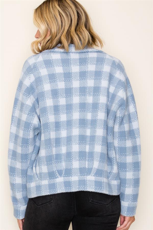 Blue and white plaid jacket