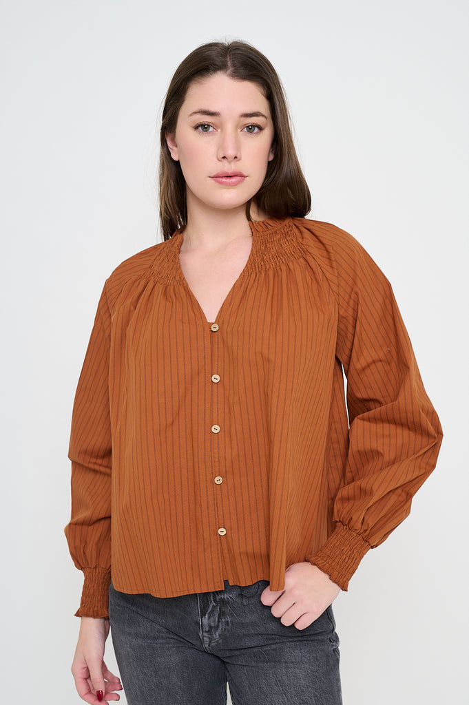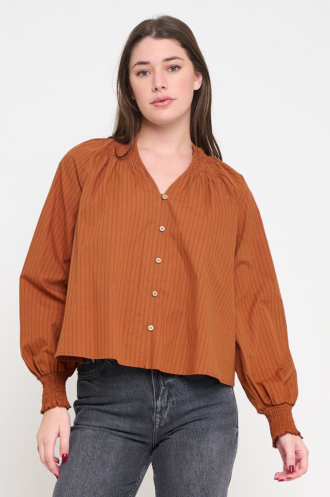 Rust and black striped top